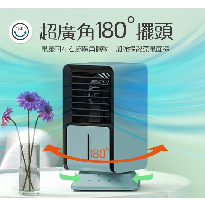 降溫/水潤/風扇/夜燈 四合一功能霧化滋潤功能,超廣角180度擺頭