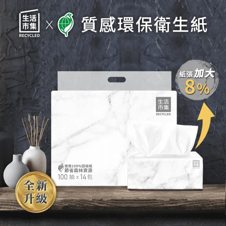 【生活市集】質感環保抽取式衛生紙(100抽x14包x6串/箱)ISO環保標章認證