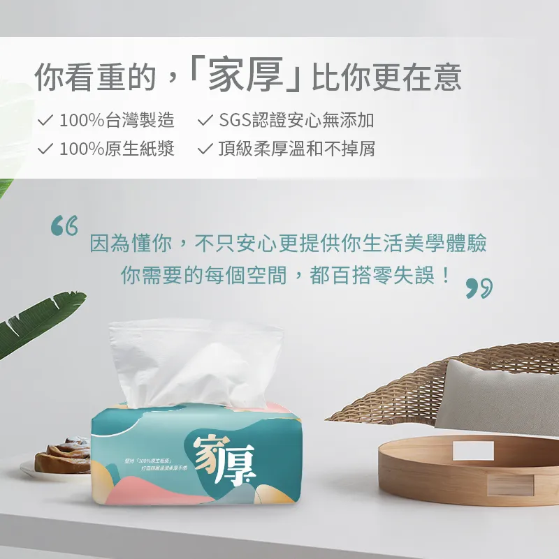 【家厚】可溶水四層抽取式衛生紙(64抽x10包x8袋/箱) 100%原生紙漿
