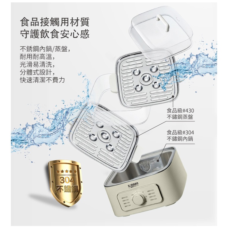商品容量:總容量9.3L(蒸籠單層 3.5LX2層、內鍋 2.3L/水位1.7L)