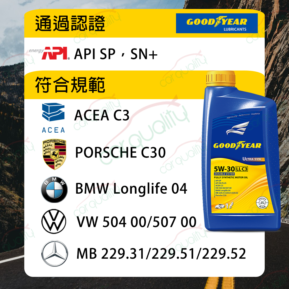 MAZDA固特異 GOODYEAR 機油套餐5W30雙酯 ULTRA504/507 1L*5 完工價