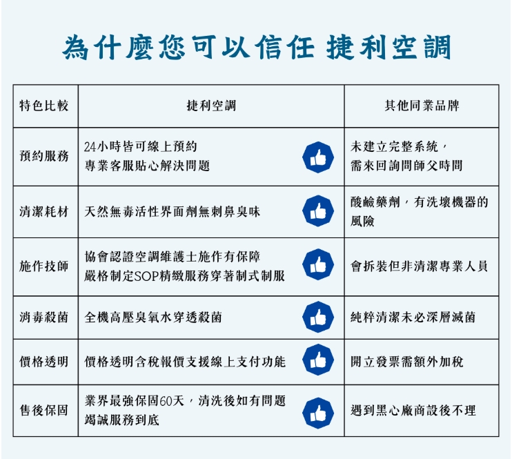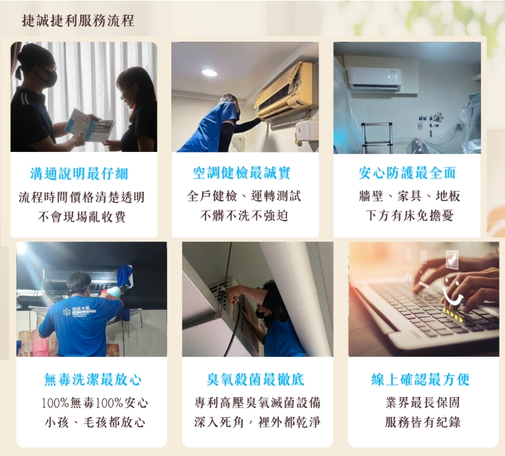 提供冷氣清洗保固30天:限清洗後機組功能保固(髒汙除外),凡因我方清洗疏失所造成的機器損壞情形,公司將派員協助處理。